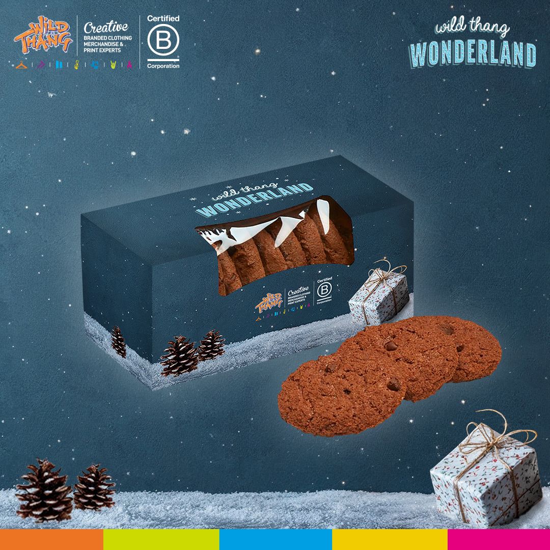 Lower Eco Impact Biscuit Box with Belgian Chocolate CookiesA winter collection of Belgian chocolate cookies packed in recyclable UK-made packaging. With vibrant full colour branding, this sweet treat is perfect for seasonal gifting, desk drops, or client mailers.