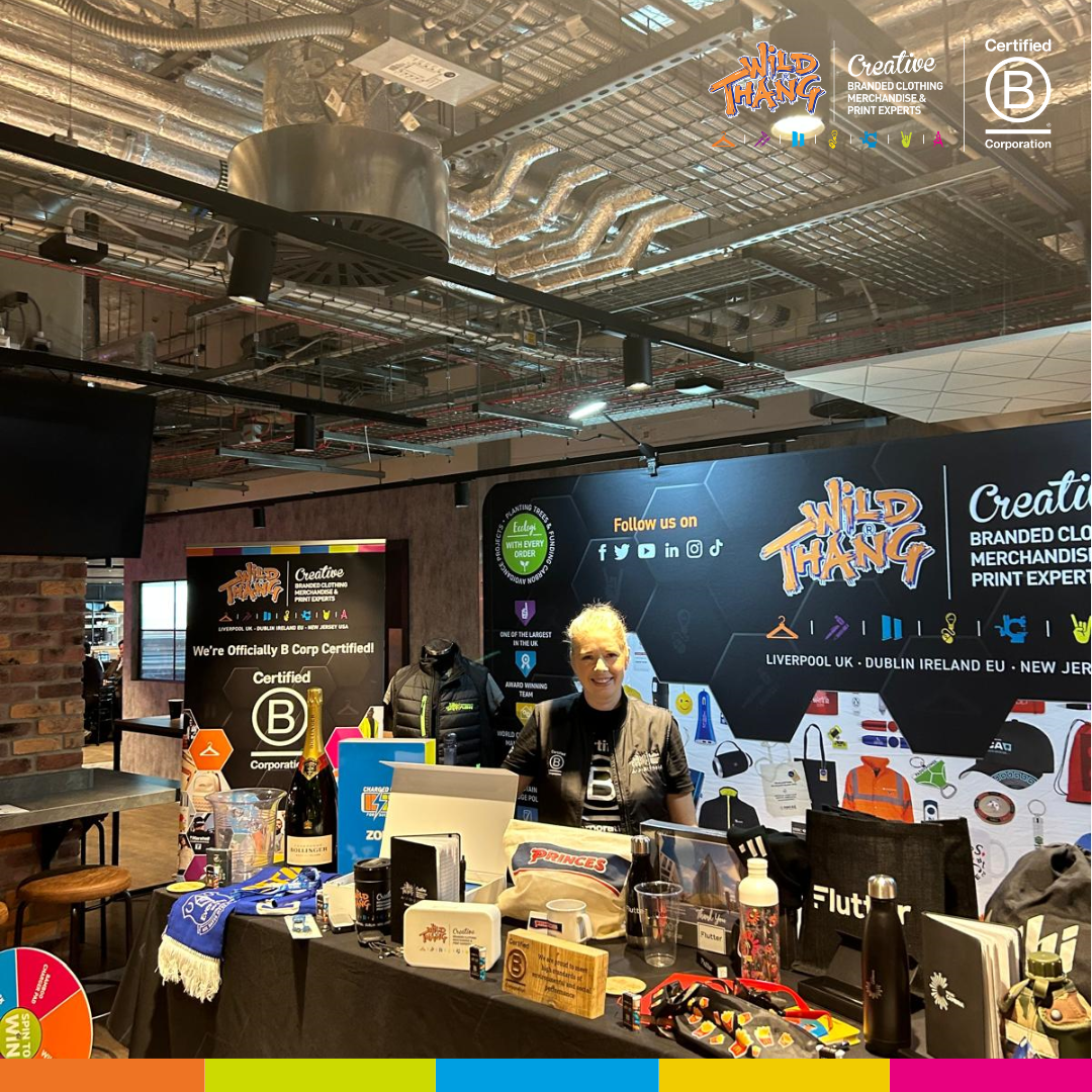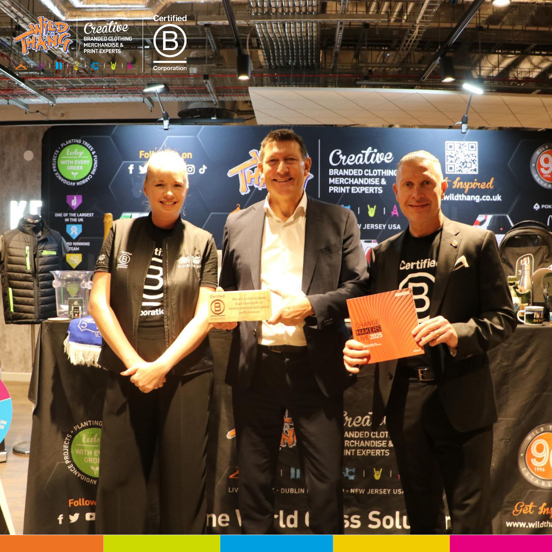 Event Picture with Frank Mckenna & Chris LeeChange Makers Live was also a fantastic opportunity for us to share some incredible news with everyone in attendance, Wild Thang is now officially a B Corp certified company. For us, B Corp status is more than a certification, it is a commitment to using business as a force for good. It underpins everything we do, from protecting clients’ brand reputation and reducing supply chain risk to delivering sustainable, ethically sourced branded merchandise that has a lower eco-impact. Events like this give us the perfect platform to highlight how branding and merchandise can be both powerful and purposeful, helping organisations to tell their story in a way that aligns with their ESG values.
