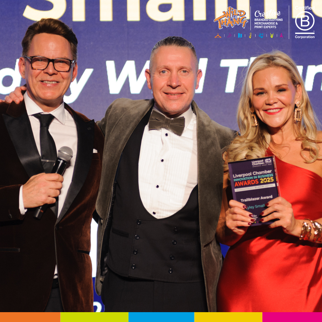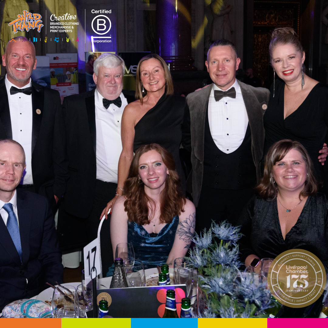 Liverpool Chamber Chief Executive Paul CherpeauAs we look back on another unforgettable evening, we’re filled with pride to be part of such an inspiring business community. Reflecting on Wild Thang’s journey from a small startup with a Prince’s Trust grant to an industry leading international supplier of world-class creative branded clothing, merchandise, and print. We genuinely think every company should be asking the ‘WHY’ question and only aligning with companies they trust and have shared high standards, values and ethics. These awards are filled with likeminded companies, organisations and individuals who align with our very own values and ethics for using business as a platform to be a force for good in a way that’s better for people, the planet, and our communities.