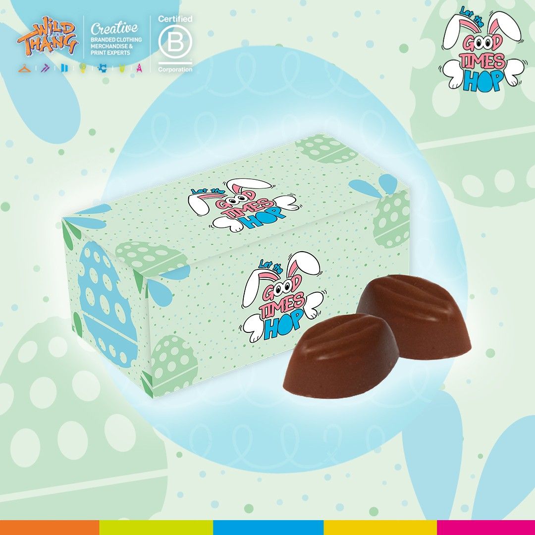 A small but indulgent seasonal treat featuring two delicious chocolate truffles presented in compostable packaging. A perfect way to share a sweet Easter moment with clients, employees or event guests while showcasing your branding with a full colour printed gift box.