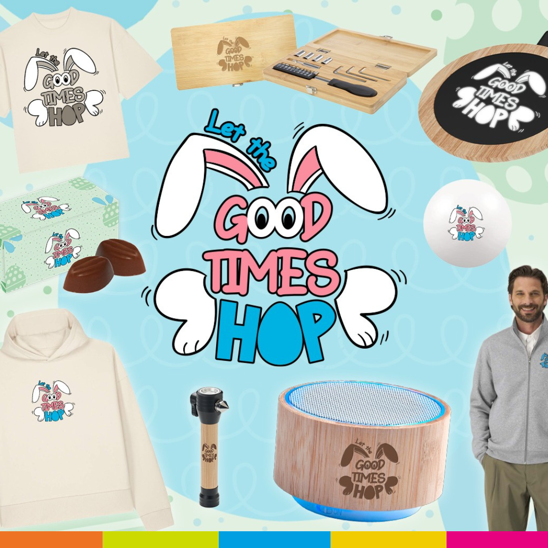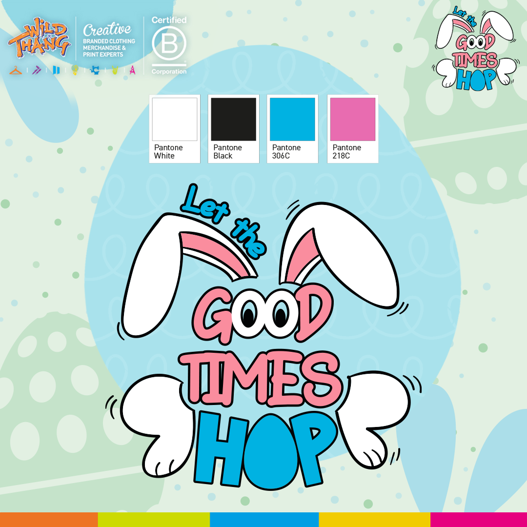 Let The Good Times Hop Product HighlightWhy not take a look below at the world-class creative branded merchandise, clothing and print our team has brought together to help you Let The Good Times Hop this Spring & Easter.