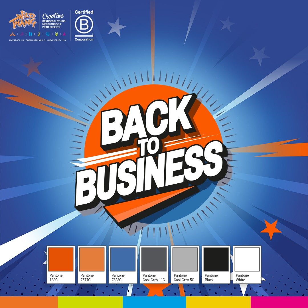 Wild Thang Back To Business Pantones This campaign celebrates the power of fresh starts, motivating your team, rewarding hard work, and connecting with clients in meaningful ways. Whether it’s branding a more casual apparel range for your salesforce, Lower-Eco impact desk accessories for your office, or thoughtful team or client corporate gifts, our one world-class solution makes it easy to deliver branded merchandise that inspires and performs. We hope you love the back to business product inspiration campaign, which is all focused on helping you get inspired. This is all brought to life by our award-winning creative in-house graphics, sales and sourcing teams who are there to help and always available with free expert advice.