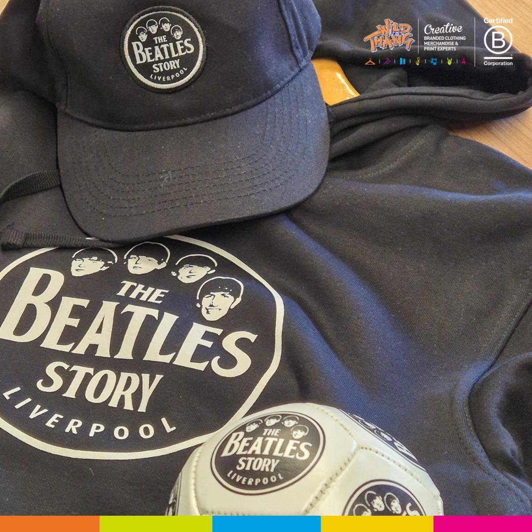 Beatles Story Hoodie, Cap and Mini Football A recent project showcased exactly how effective this approach can be. Working with one of Liverpool’s most iconic tourist attractions as a trusted supply partner, The Beatles Story, we were tasked with creating a premium, sustainable apparel range & that reflected the brand’s global reputation. Through creative design development, sampling, and sustainable production using organic and recycled materials, we delivered a retail-quality clothing and accessory collection that has quickly become a best-seller. With multiple replenishment orders, international customer appeal and an enhanced in-store experience, the collaboration is a perfect example of how thoughtful, sustainable manufacturing can deliver commercial success and brand authenticity, the Wild Thang way.