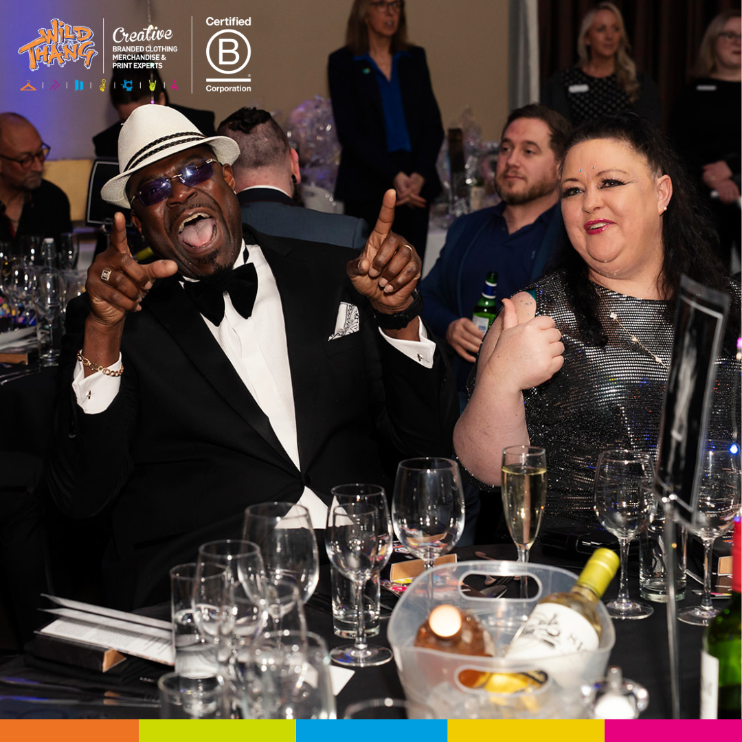 Garth & Claire Dallas Enjoying The Night As we transitioned into the evening, the room was transformed into a gala-dinner venue, with guests entering the reception and being welcomed by a lady in a dress holding hundreds of flutes of champagne, and music performed by the talented jazz trio, The Jazzophonists. As guests entered the main room to be seated for dinner, the entertainment did not stop there; the whole evening was then hosted by the very talented Claire Simmo, who, of course, brought her unique and special personality & energy, with lots of sparkle. It was then time to go back to 1996 and work our way through the decades, highlighting key moments in Wild Thang’s journey to the present day, and including mentions of every team member from both Wild Thang MD Andrew Dwerryhouse and Commercial Director Sarah Howarth. There were heartfelt speeches from our charity partners, Jo Henney (Nugent), Paul Winter (Clatterbridge Cancer Charity) and some fun fundraising games.