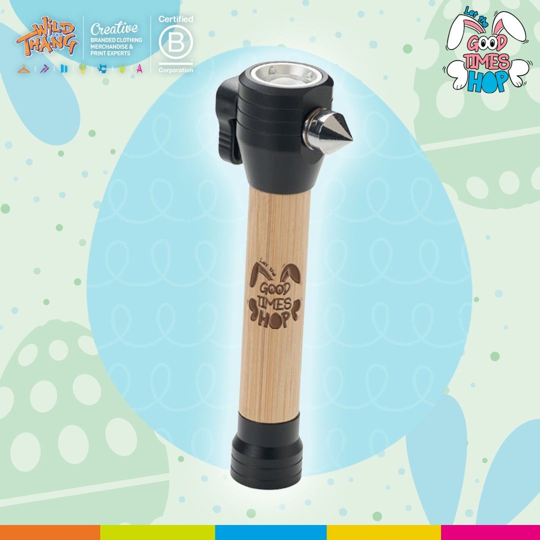 A practical 3 in 1 bamboo torch combining a safety hammer and seatbelt cutter, making it a useful emergency tool for cars or travel. Featuring a magnetic base and 60 lumen light output, it offers both functionality and a natural bamboo finish that provides a lower-eco impact look and feel.