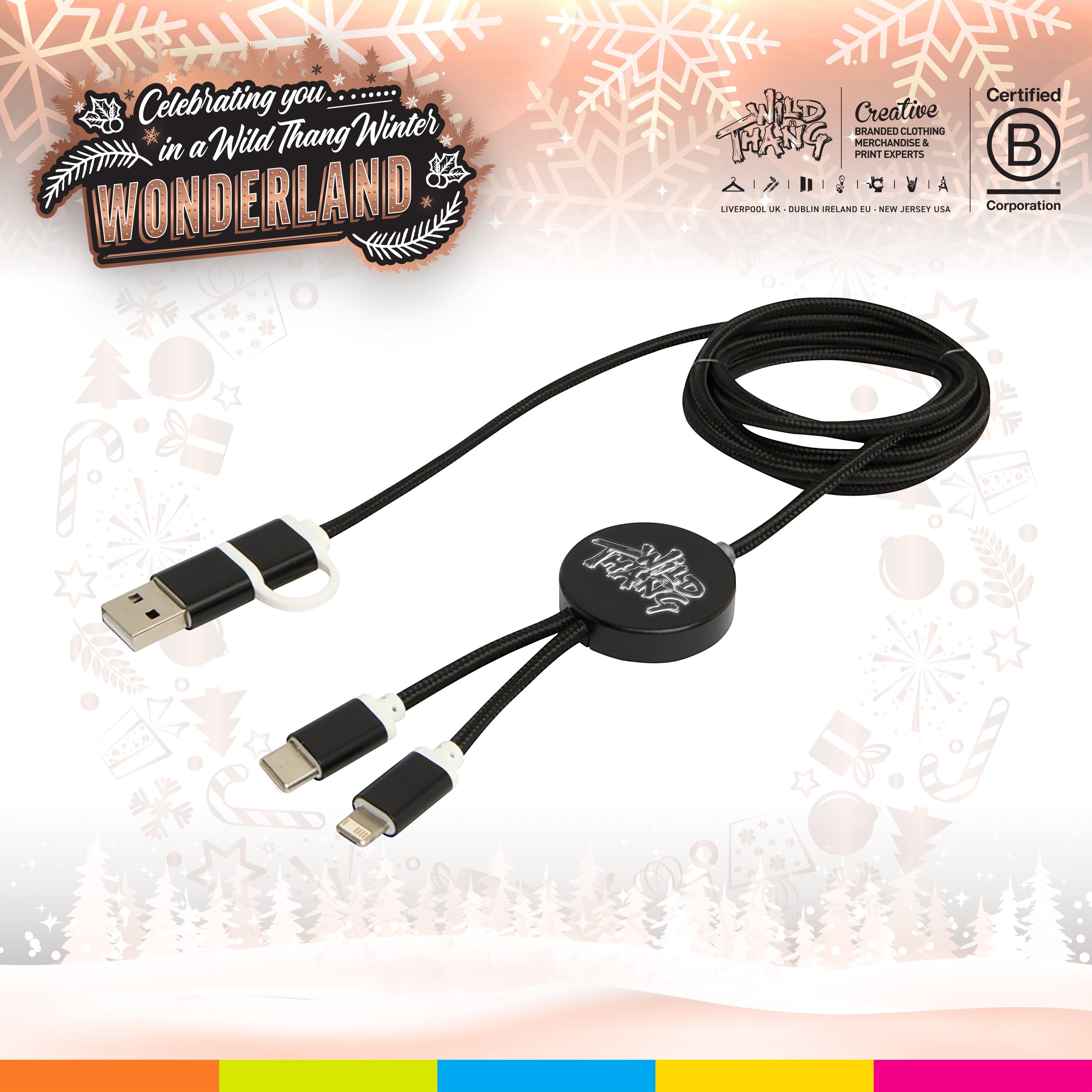 5-in-1 Recycled Aluminium Fast Charge CableA beautifully designed 27W fast-charge cable made from recycled aluminium and recycled plastic. With 150cm of length and 5-in-1 compatibility, it’s a practical gift that always comes in handy.
