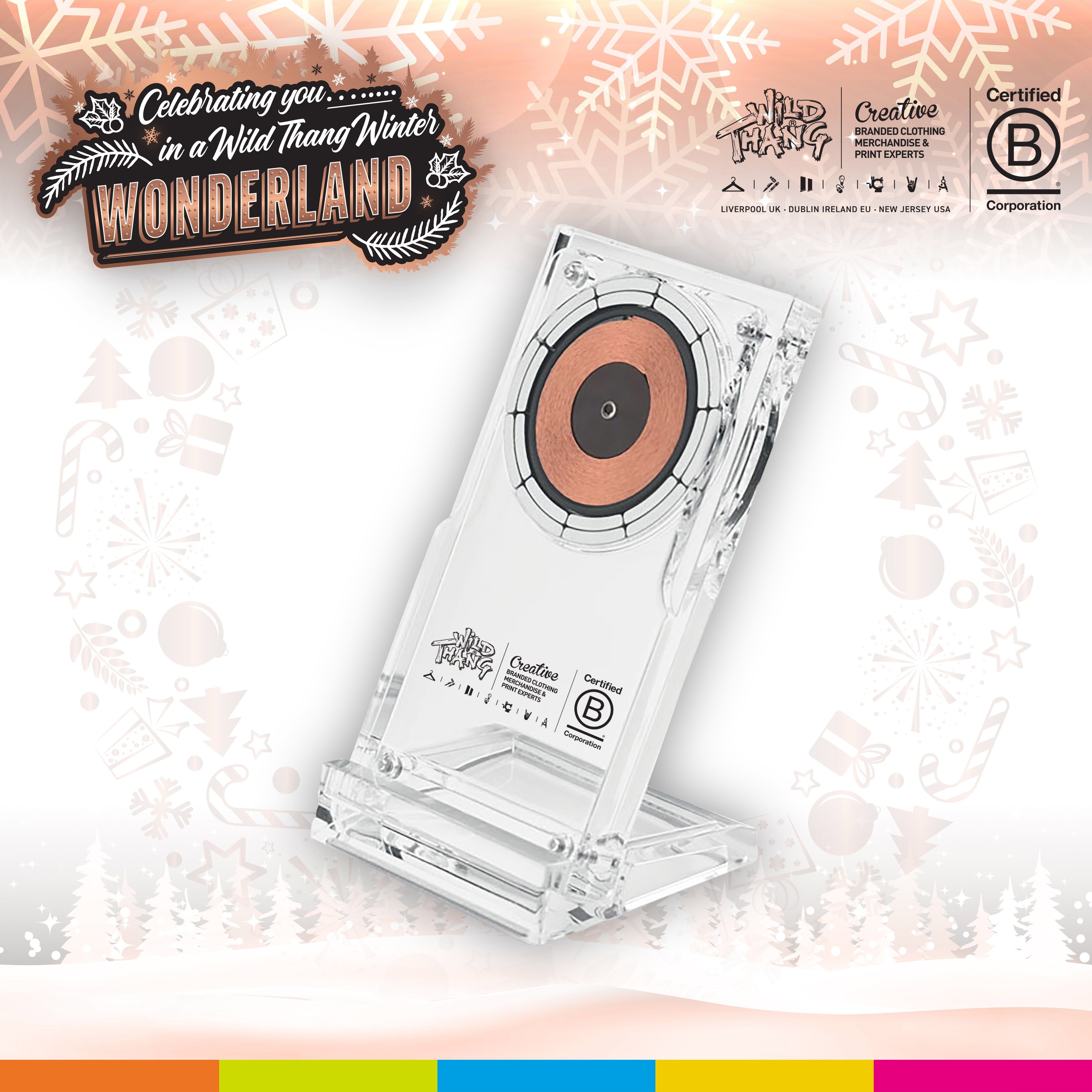 Cryl Phone Charger StandA festive desk upgrade! This 15W wireless charger stand delivers fast, efficient charging while keeping your phone upright and ready for every call, message, or Christmas countdown.